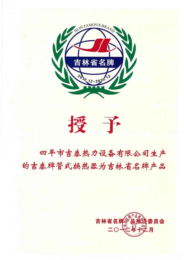 四平市吉泰熱力設(shè)備有限公司始建于1996年,坐落在全國衛(wèi)生園林城市,擁有“中國換熱器基地”美譽的四平市,公司擁有雄厚的技術(shù)力量和人才優(yōu)勢,國內(nèi)生產(chǎn)設(shè)備,完善的檢測手段,是吉林省集設(shè)計、開發(fā)、生產(chǎn)經(jīng)營于一體的換熱設(shè)備生產(chǎn)企業(yè)。